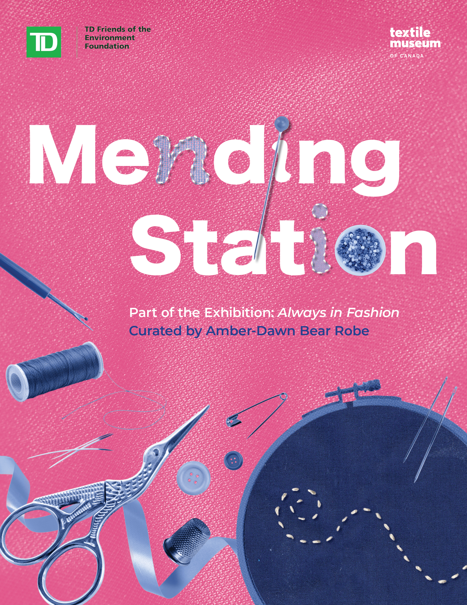 The Mending Station, generously funded by TD Friends of the Environment, is an Indigenous-led, public-facing repair and learning hub that centres garment mending as both a creative and sustainable practice. Each session will welcome up to 15 participants and is led by an invited textile artist or designer who brings their own practice, knowledge, and approach to repair into the space. What was originally conceived by Raven Spiratos as an extension of Eye of the Earth, a solo exhibition by Samuel Nnorom, has now become an extension of the Museum’s upcoming exhibition: Always in Fashion. This exhibition, curated by Amber-Dawn Bear Robe, is an engaging exploration of Indigenous design languages and their transformative impacts on the fashion landscape.