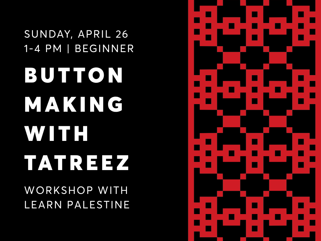 Tatreez is a traditional form of Palestinian cross‑stitch passed down through generations. In this side‑by‑side program for children and their adult caregivers, we will explore the cultural and historical significance of tatreez and its importance as both a beautiful art form and a means of preserving tradition. Facilitated by Learn Palestine, this workshop introduces participants to the basics of cross‑stitching while also examining the meanings behind tatreez motifs, the distinct regional variations of Palestinian thobes, tatreez’s role in women’s empowerment, and its use as a form of self‑expression. By the end of the workshop, each participant will create a wearable tatreez button.
